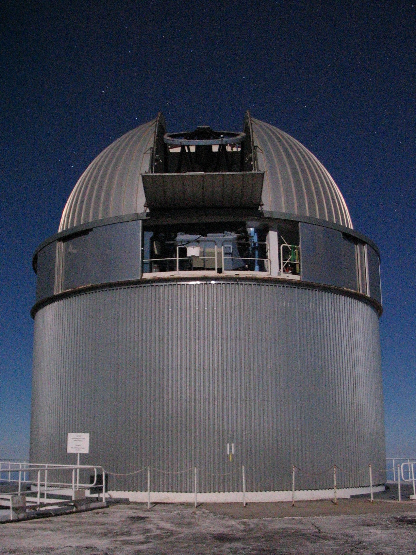 The NOT dome at night. Taken with 15 s exposure with NOT illuminated with a