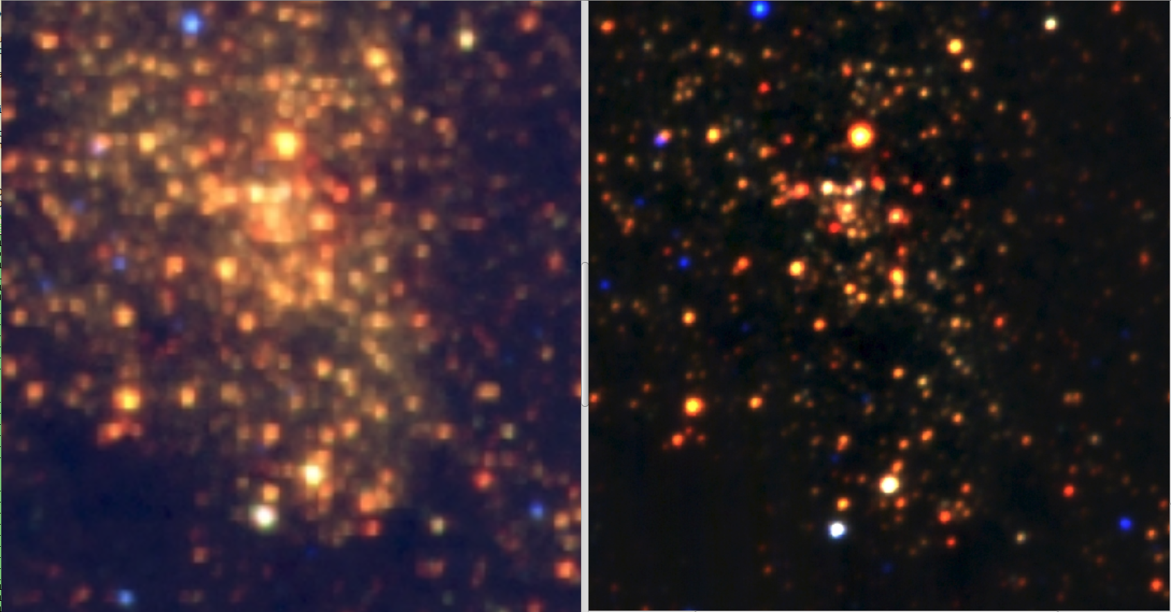 Comparison of the central 80'' region with the two different spatial resolutions of NOTCam. Data from April 2016.